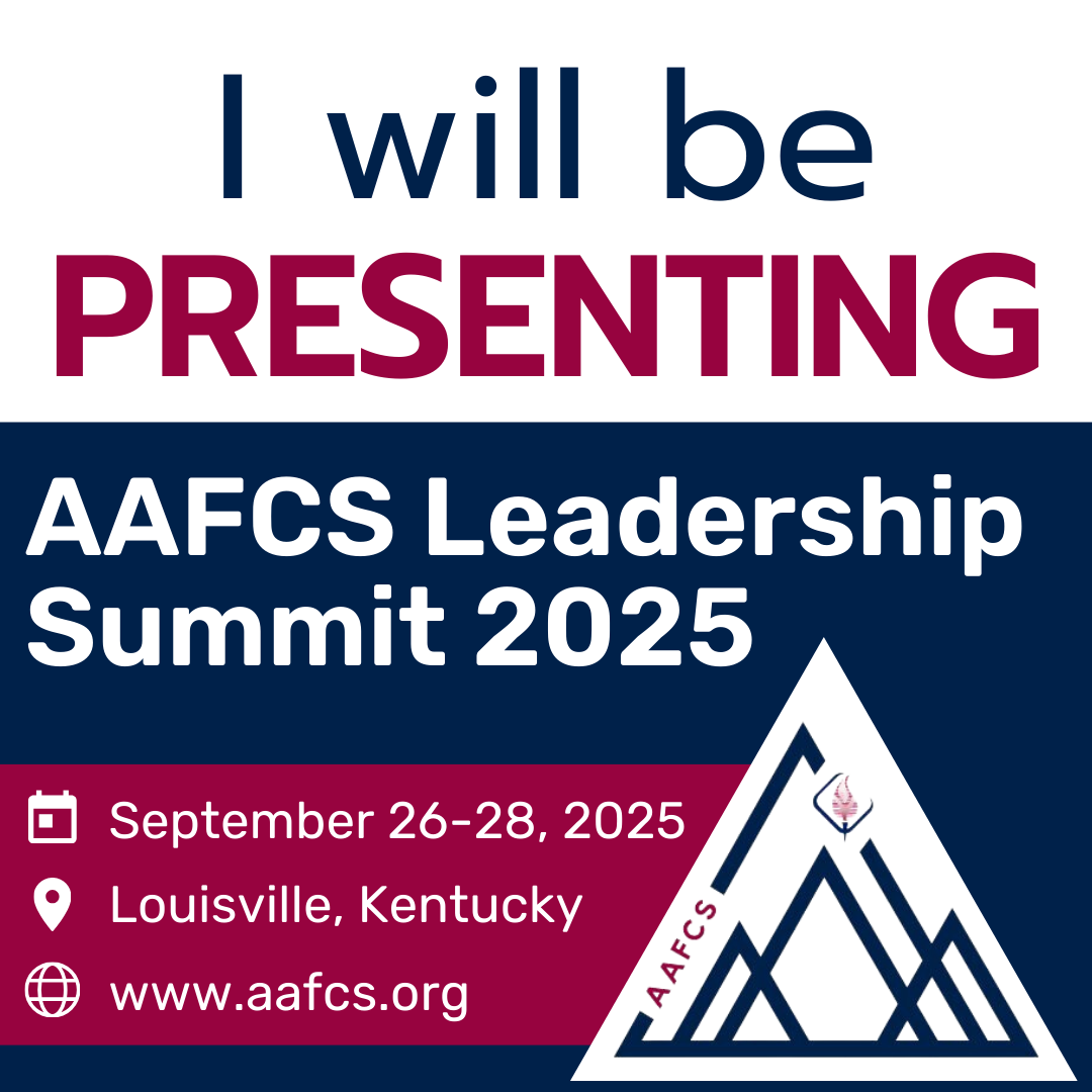 I am excited to announce I'll be presenting at the upcoming AAFCS Leadership Summit this September in Louisville! I’ll be sharing insights on [topic] and connecting with fellow changemakers. Let’s shape the future of leadership together.